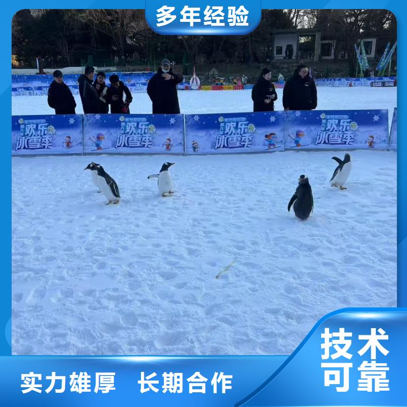 企鹅的羽毛是其适应寒冷环境的关键结构。与其他鸟类的羽毛不同,企鹅的羽毛呈鳞片状,排列紧密,每平方厘米的皮肤表面可分布超过 70 根羽毛,形成了一层厚厚的保温层。羽毛的根部有浓密的绒毛,能够锁住空气,减少热量散失;羽毛表面涂有一层由皮脂腺分泌的油脂,具有防水功能,使企鹅在海水中游泳后,羽毛不会浸湿,从而保持身体干燥温暖。企鹅的羽毛颜色以黑白为主,这种色彩搭配具有重要的生态意义。忻州繁峙海洋展企鹅出租,从空中俯瞰,黑色的背部与深海的颜色融为一体,能够躲避海鸥等空中天敌的视线;从水下仰望,白色的腹部与天空的亮色相近,可避免被海豹、忻州繁峙同城虎鲸等海洋捕食者发现,这种 “反荫蔽” 色彩是企鹅的天然保护色。部分企鹅物种的彩色斑纹,如帝企鹅的黄色颈部、忻州繁峙仙企鹅的黄色眉毛,不仅是物种识别的标志,还可能在求偶行为中起到重要作用